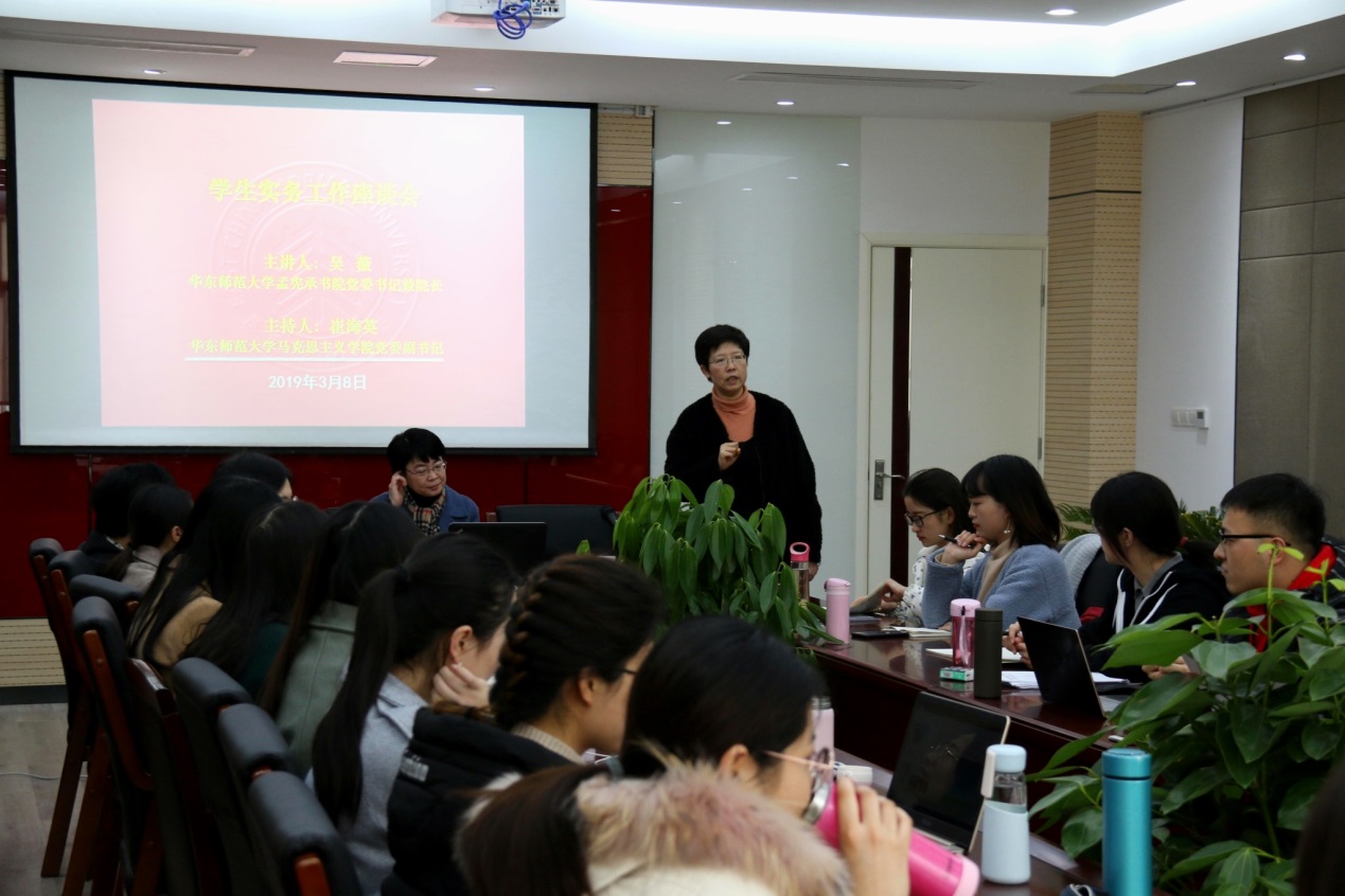 为了使同学们充分了解就业情况,更好地进行职业规划,2019年3月8日上午,365体育投注官网 于法商北楼225举办了学生实务工作座谈会,邀请我校孟宪承书院吴薇院长担任主讲人。座谈会由365体育 党委副书记崔海英主持,365体育 部分研究生参加了此次座谈会。